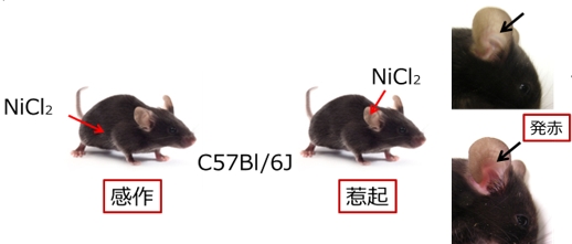 私たちの研究室では、2000年から金属アレルギーに関する研究を始めました。金属アレルギー発症モデルマウスを独自に開発して実験していますが、現在でもコンスタントに機能しているモデルマウスは、これ以外に世界でほとんどありません。このモデルマウスを使って、皮膚の免疫や炎症に関する分子との関わりを調べ、そもそも金属アレルギーがどのようにして起きるのかを明らかにするために、研究を積み重ねています。